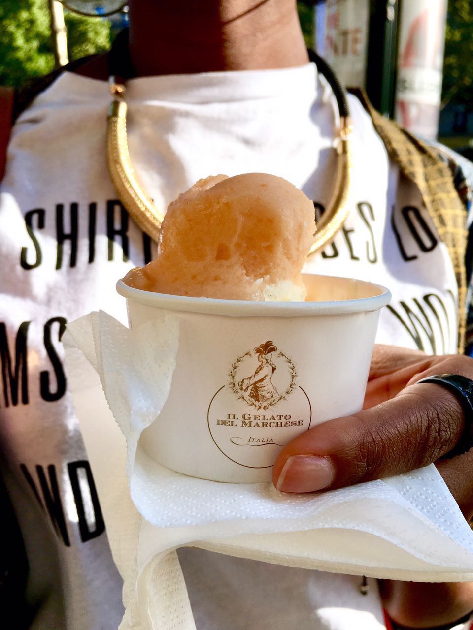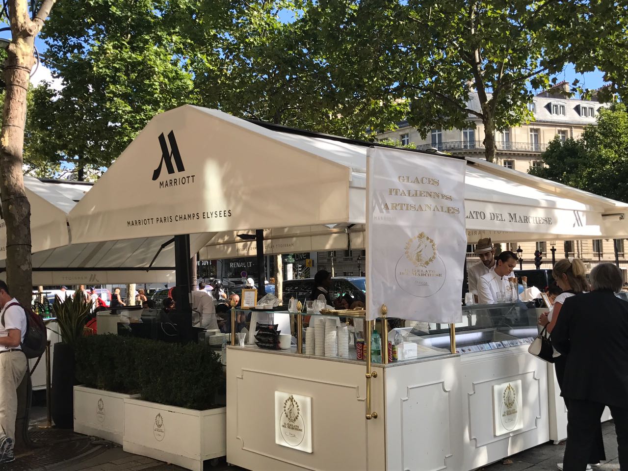 Il me faut un nouveau fond de teint, direction le Sephora des Champs Élysées. Le meilleur endroit de la capitale pour tout ce qui est makeup, parfumerie, soins. Mon fond de teint (6W1) d’ Estée Lauder ne me va plus. Je dois trouver ma nouvelle teinte. La maquilleuse de la marque est excellente. Elle prend le temps de m’expliquer les formulations et tout ce qui fait que son fond de teint est le meilleur. Adjugé, vendu. Je repars avec mon nouveau fond de teint (double wear 5N2). J’ai aussi la nouvelle palette d’Urban Decay (Naked heat) et le sugar honey de Fresh. Je suis comblée (je sais, il m’en faut peu). À la sortie, l’hôtel Mariotte a installé un stand de glace italienne. Le combo melon/vanille est une pure merveille.