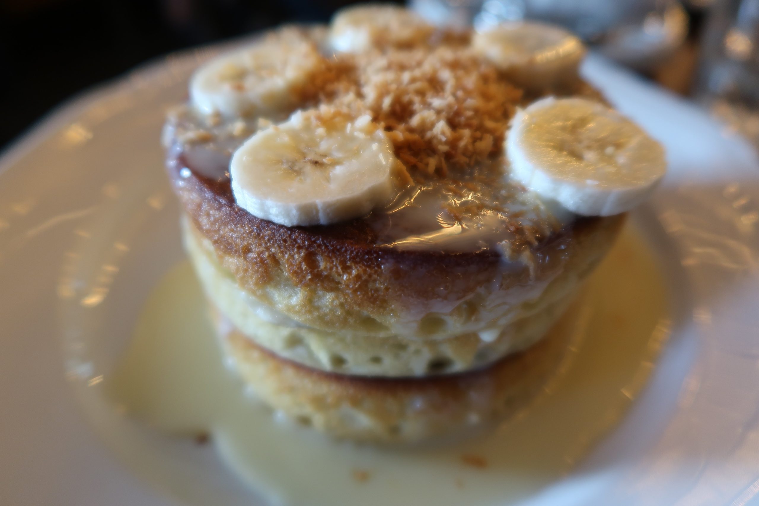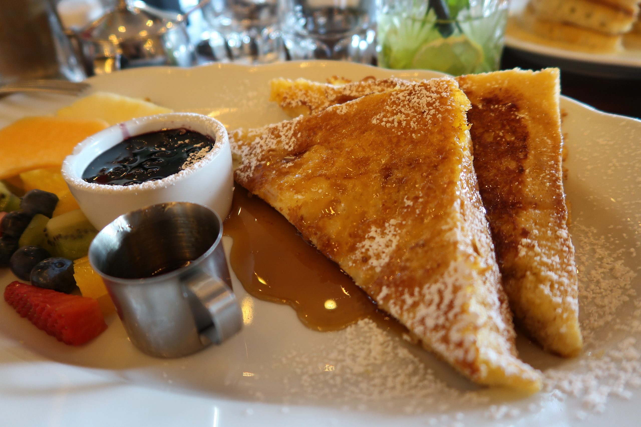 The advantage when brunch, is that you can drink alcohol (in moderation) with your croissants. We order 2 coffees and 2 cocktails. An unlikely mix you’ll say, but we do not care, we were there to enjoy. For food, since we are specially there for it, we opt for: a German breakfast for the gentleman, coming along with French toasts. For me, Benedict eggs with salmon, an avocado toast (obviously) and we also take some banana pancakes to share.