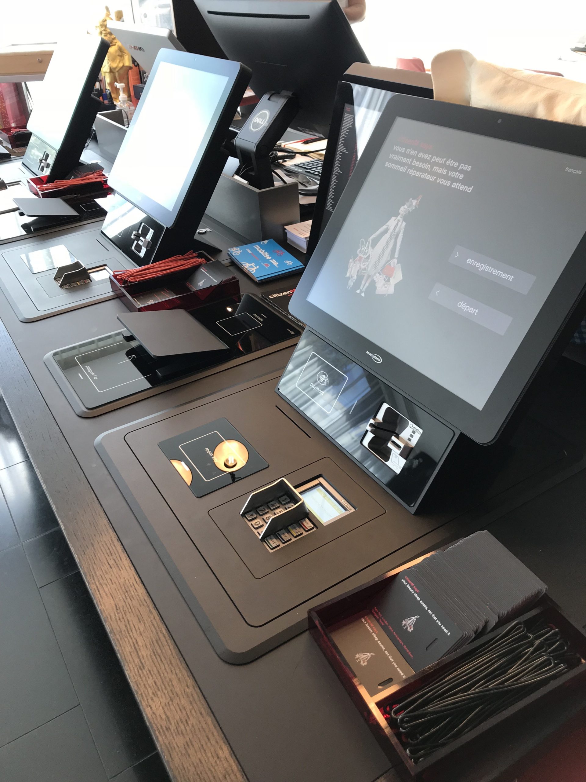Premièrement, vous êtes dés votre arrivée, mis dans l’ambiance 2.0. Le décor est ultra moderne et choisi avec goût. Ensuite, arrive la partie check-in. Des ordinateurs sont mis à votre disposition pour une plus grande autonomie. En gros, vous vous démerdez tout seul, comme un grand.