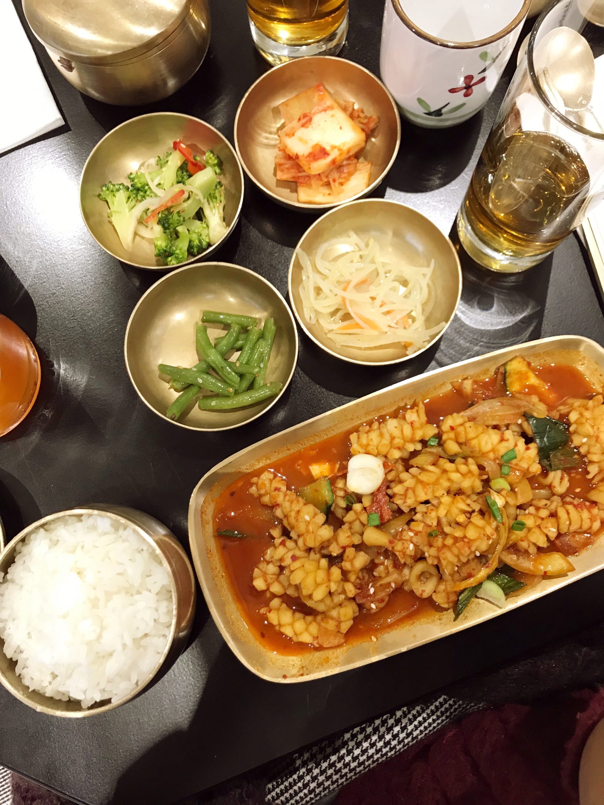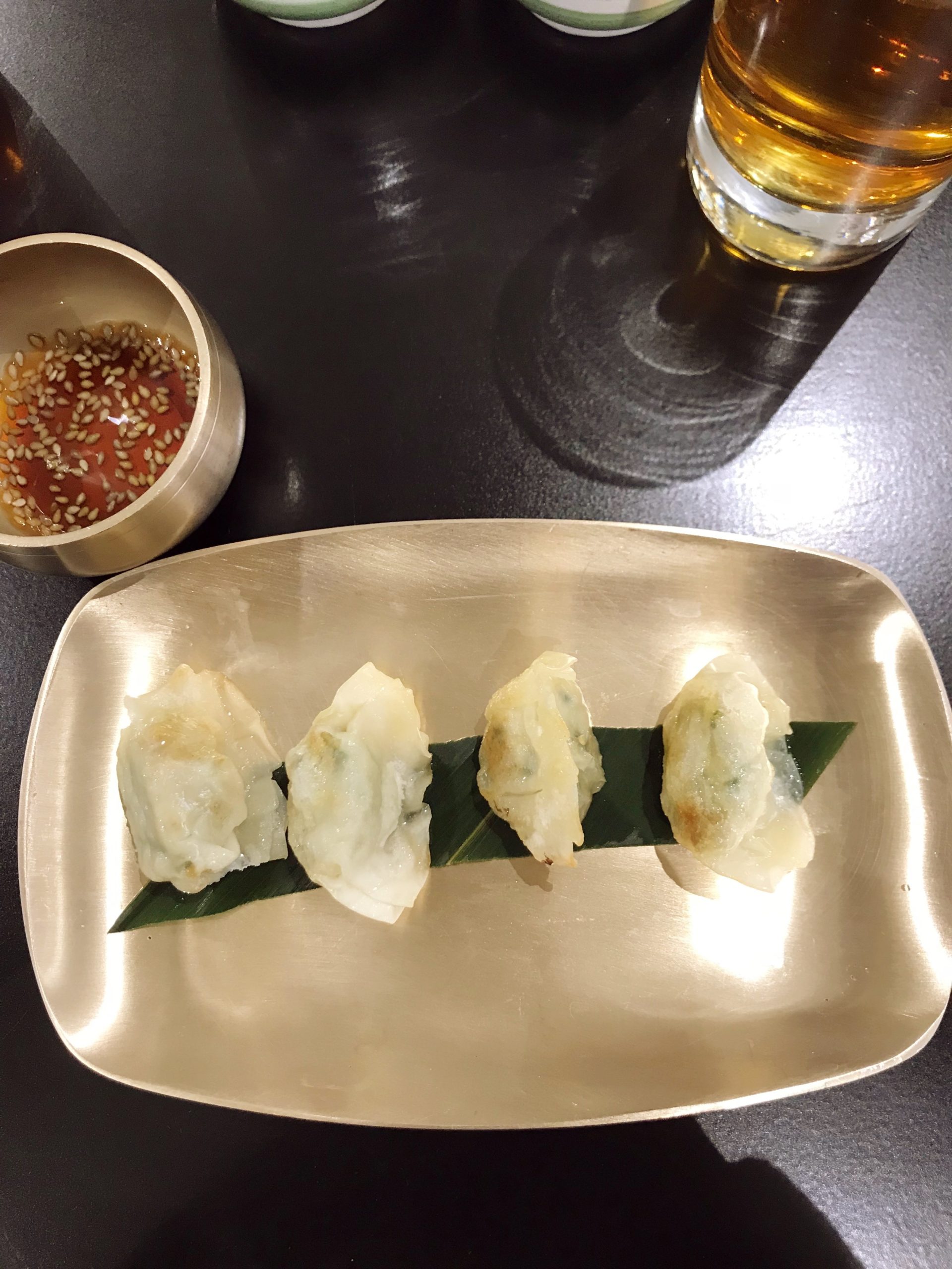 Je commande en entrée des raviolis (divin est le mot adéquat dans ce cas précis.) et en plat des calamars grillés à la sauce piquante. Doudou opte pour un saumon sauté au soja. Tout est vraiment très bon. Des produits frais, bien cuisinés. Je mettrais un 7/10 pour le repas et le cadre.