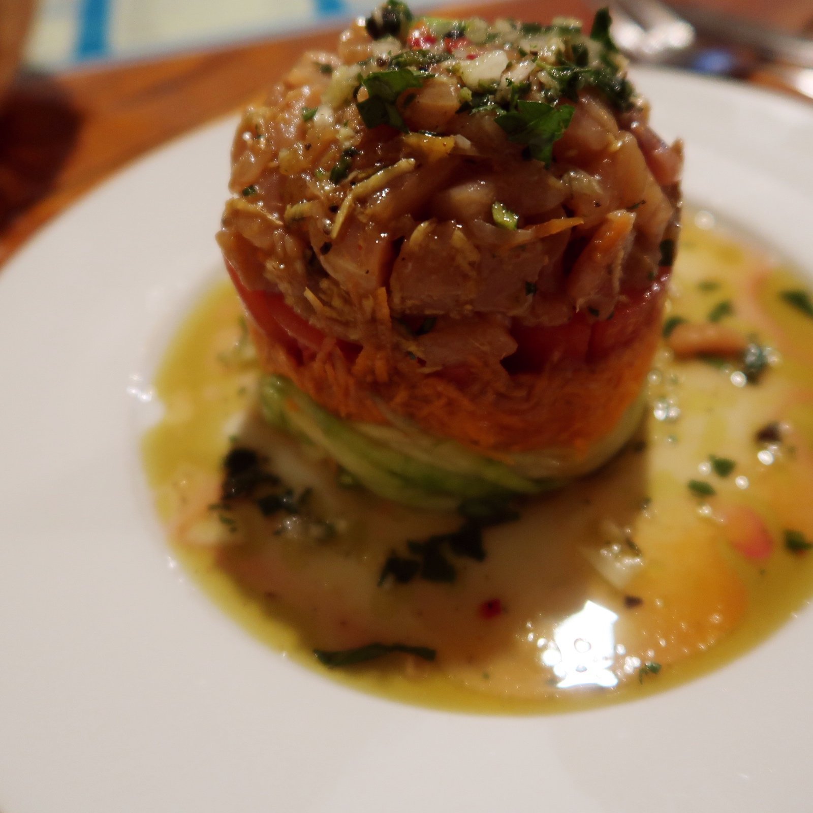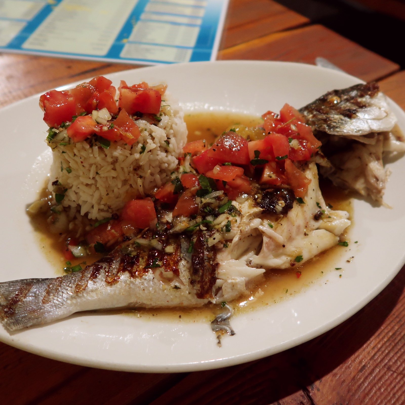 Après mes acras, j’ai testé un tartare de saumon. Une dinguerie ! Une vinaigrette excellente, du poisson frais. J’ai adoré l’entrée. J’ai poursuivi avec une dorade grillée. Le poisson était tellement fondant, tellement parfumé, tellement bien grillé ! Il était juste sublime. Le repas s’est terminé avec des beignets de bananes jaunes qui étaient juste démentielles ! Je pense que vous l’avez compris : j’ai surkiffé ce restaurant ! L’une des meilleures cuisines antillaises mangées à ce jour.