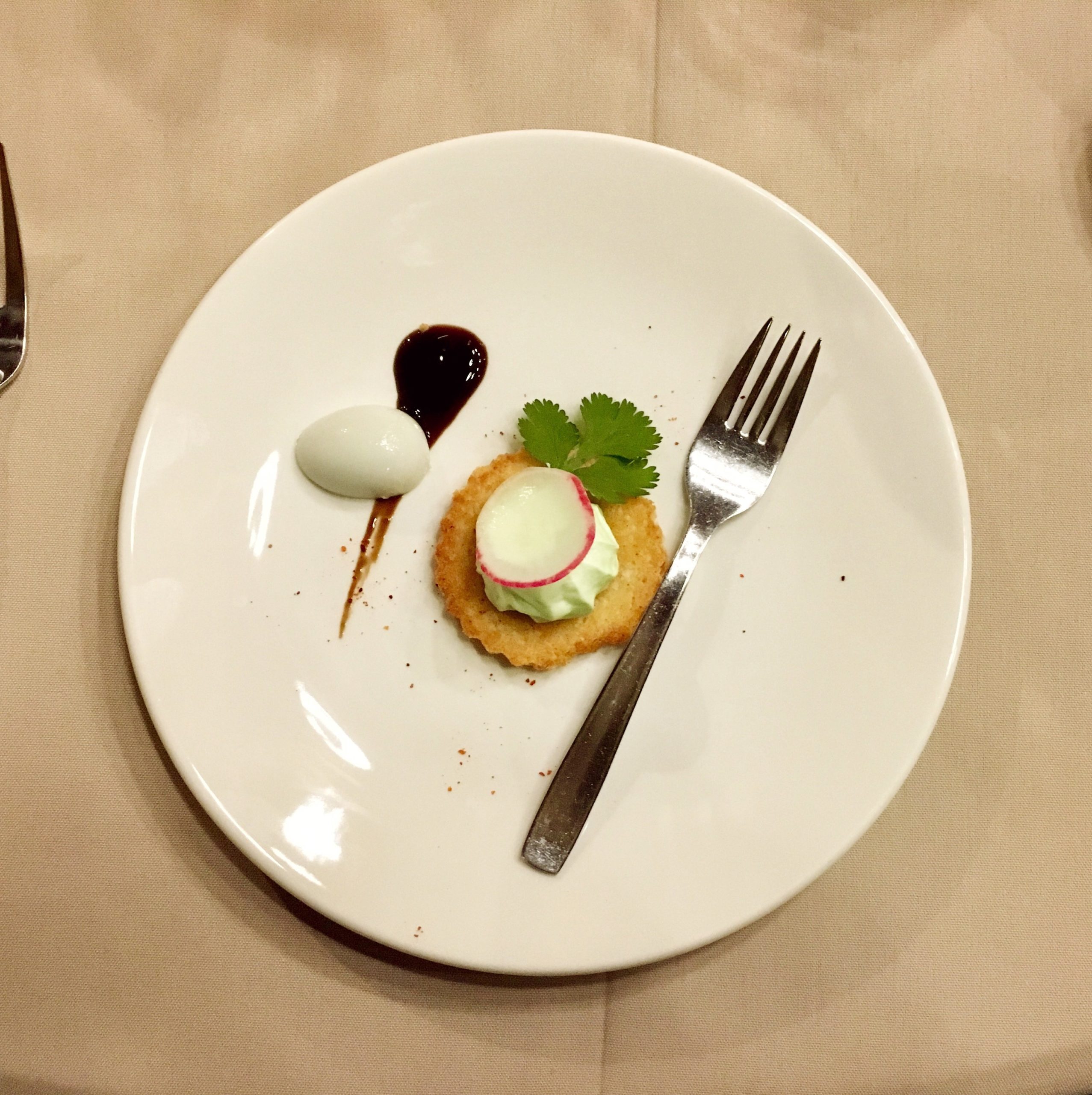 Je ne suis pas dessert, cependant, je suis et reste un inconditionnel du fromage ! (probablement mes origines…) Quoi qu’il en soit : le fromage, c’est la vie ! Et c’est à cet instant précis que le serveur me présente un chariot rempli de fromage. Il y a du choix : Brie de Corse, St Maure de Touraine, Comté vieillit du Jura, Gouda à la truffe et j’en passe. Il y en a pour tous les goûts ! Je suis aux anges…